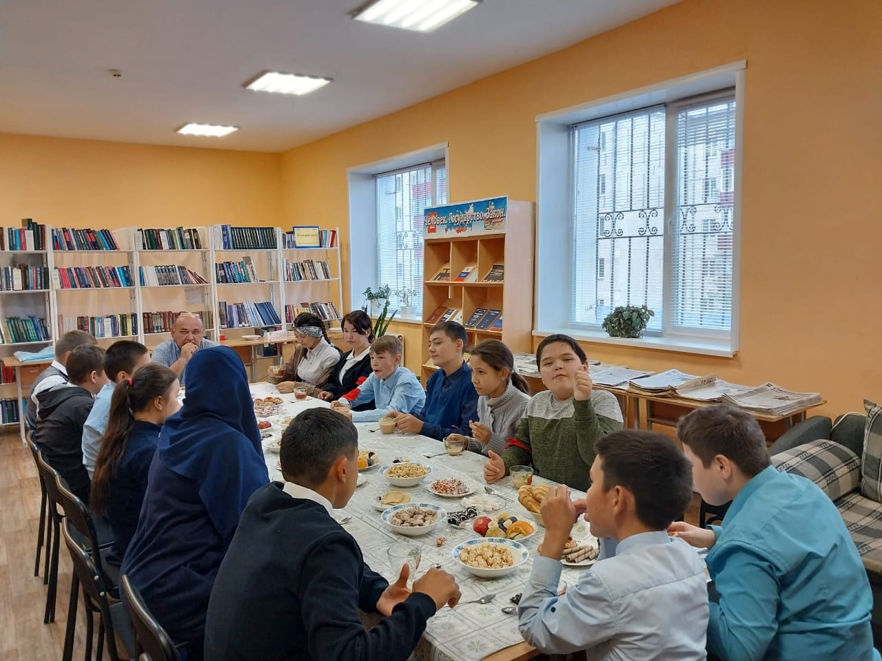 Первая встреча юных волонтеров (ученики 7 класса под руководством классного руководителя Фариды Фаритовны Биктимеровой) с миром книг состоялась в Модельной юношеской библиотеке. Дети кратко ознакомились с деятельностью учреждения. После того, как волонтеры получили теоретические знания о том, как нужно реставрировать ветхие книги, они приступили к практике. Итого на первой встрече в рамках проекта были отреставрированы 16 книг. Мероприятие не обошлось без чаепития, которое еще больше сблизило и сплотило волонтеров и сотрудников библиотеки.