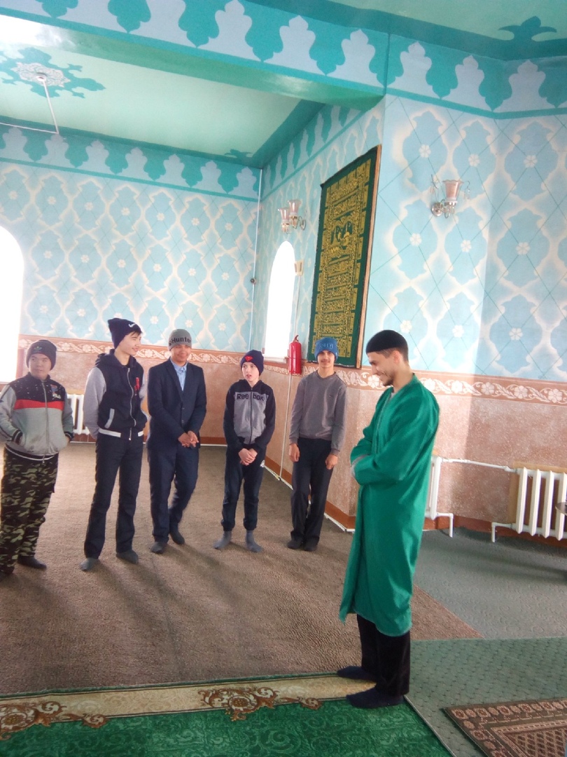 В продолжении изучения предмета " Этика", обучающиеся Сибайской коррекционной школы посетили Сибайскую соборную мечеть Ат-Таква. Школьников встретил преподаватель мечети Муслим мулла,который провел экскурсию по мечети и рассказал историю его создания. Так же, доступным для обучающихся с ОВЗ языком, он рассказал о добре и зле,о том почему важно творить добрые дела на земле. Дети послушали чарующие звуки Азана, рассказали,какие чувства вызвал у них Азан, понаблюдали за молящимися людьми. Их удивила скромная красота мечети.Они заинтересовались тем,что в убранстве мечети преобладает зеленый цвет.Муслим мулла ответил,что зеленый цвет это цвет весны,жизни,пробуждения мира после зимней спячки. Обучающиеся с интересом его слушали и задавали свои вопросы. Экскурсия в мечеть оставила в их душе глубокий след.