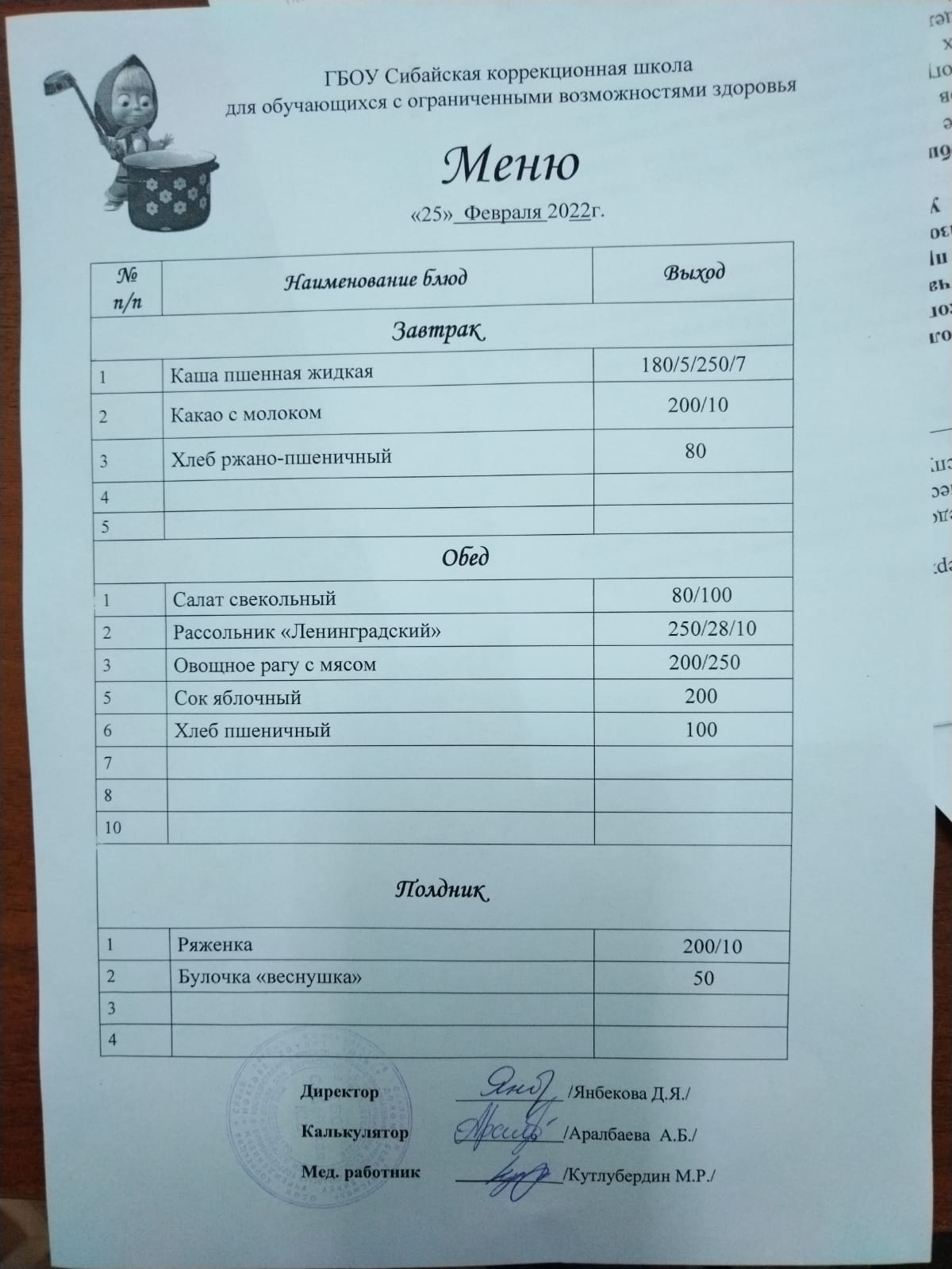 (Завтрак)
