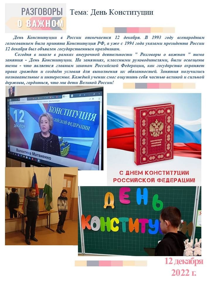 12 декабря в классе прошло внеурочное занятие из цикла "Разговоры о важном" на тему "День Конституции"