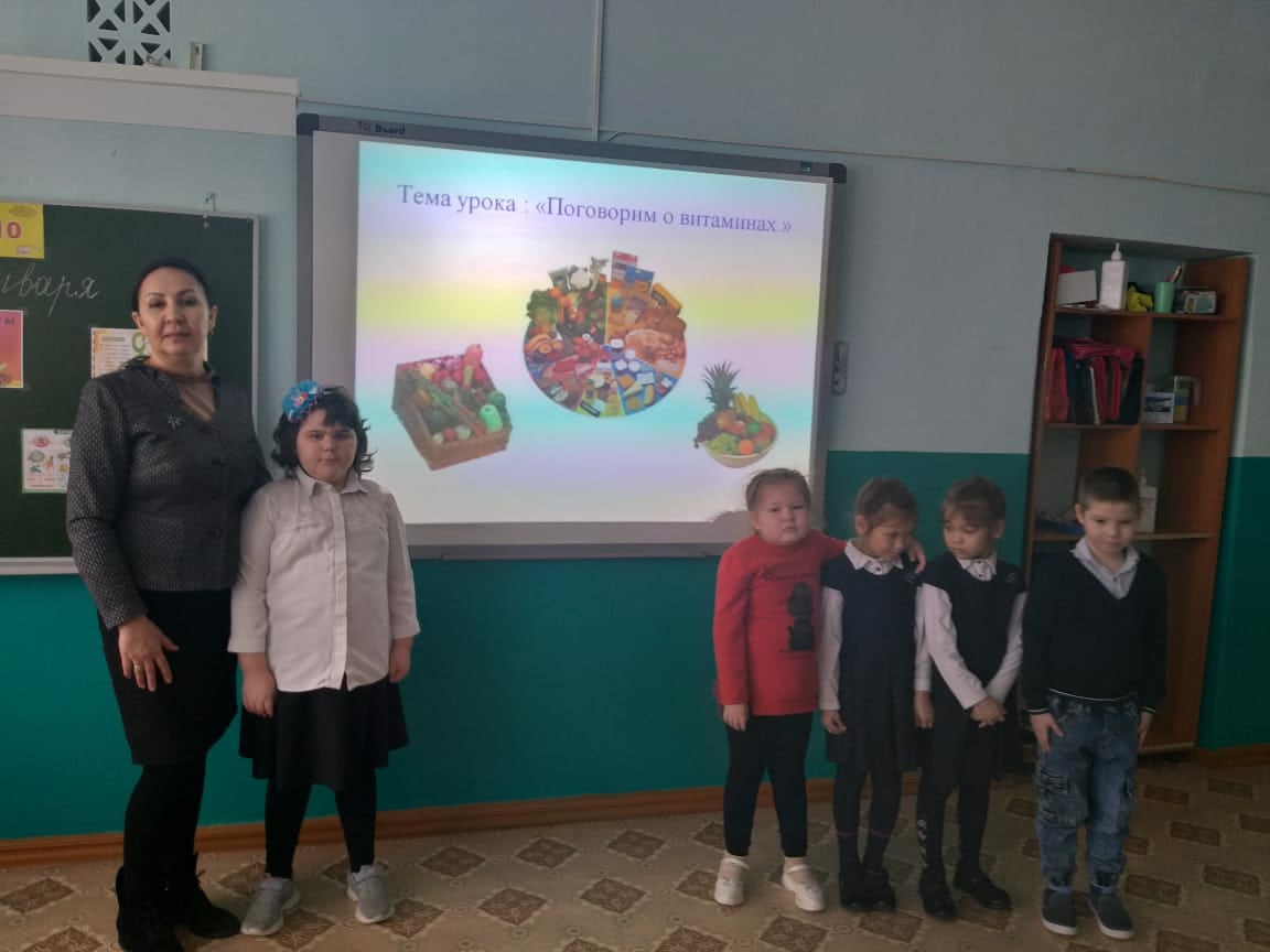 Дети познакомились с разнообразием ягод, фруктов и овощей, их полезными свойствами, со значением витаминов в жизни человека, о правильном питании. Также говорили о бережном отношении к своему здоровью. Дети с удовольствием отвечали на уроке, провели веселую физминутку и выполняли практическую работу.