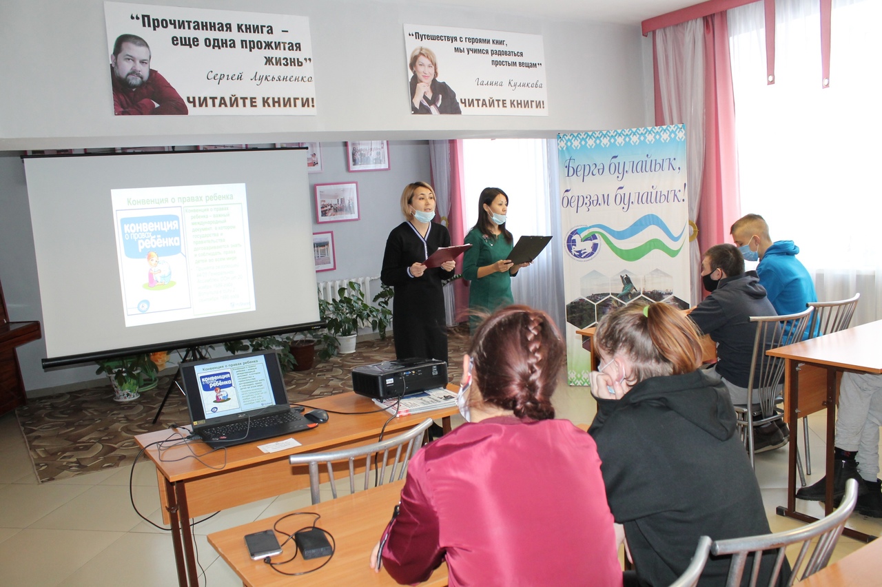 Многим взрослым трудно понять и принять, что ребенок – равноправный с ними человек, имеющий право на собственные поступки и мнение. Его право, как и право любого человека, нужно уважать и не нарушать. В преддверии Международного дня защиты прав ребенка, который будет 20 ноября, для учащихся 11а класса ГБОУ Сибайская КШ провели час правового просвещения "Тебе о праве и право о тебе". Ребят познакомили с международным соглашением – Конвенцией о правах ребенка, рассказали о правах и обязанностях детей. Также они узнали об ответственности за совершение тех или иных опасных действий. В ходе мероприятия игровой форме закрепили знания статьей из Конвенции. Разбирали разные ситуационные моменты о правах и обязанностях детей. В викторине "Права литературных героев" дети отвечали на вопросы, в каких сказках и какими героями нарушаются те или иные права. Слушая песни, из известных мультипликационных фильмов отгадали, о каком праве идет речь. Так в игровой форме закрепили правовые обязанности детей. Мероприятие сопровождалось электронной презентацией.
