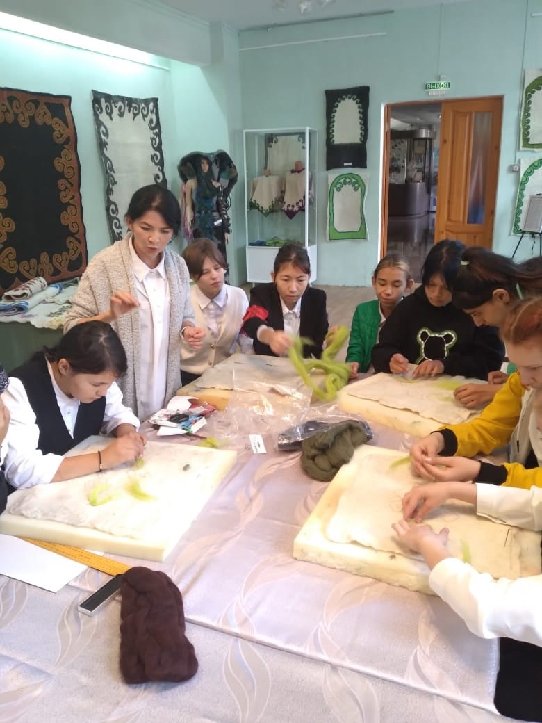 Сегодня в Сибайском музее прошел мастер-класс для девочек нашей школы по сухому валянию и нанесению башкирского орнамента "кускар" на маленькие коврики