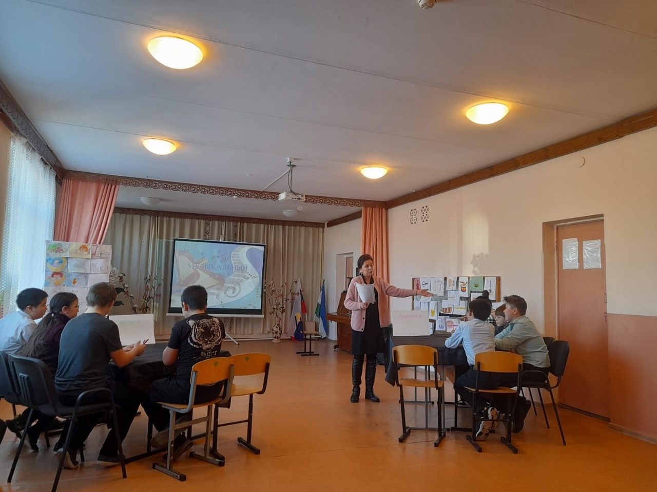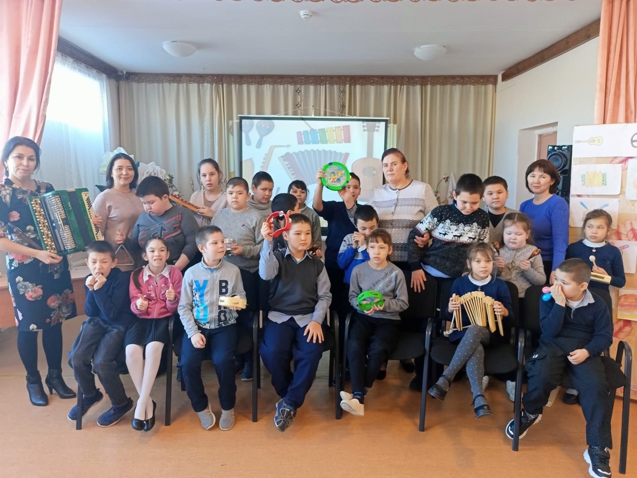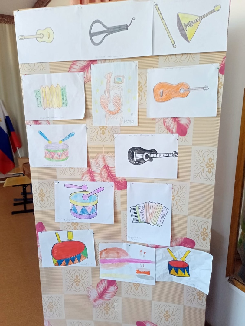 В начальных классах прошло два мероприятия "В стране музыкальных инструментов" и "Праздник музыки", где ребята показали свои знания и совершили путешествие в мир музыки. Они пели, танцевали, играли на шумовых инструментах, отгадывали загадки. Приняли участие в конкурсе рисунков "Музыкальные инструменты".